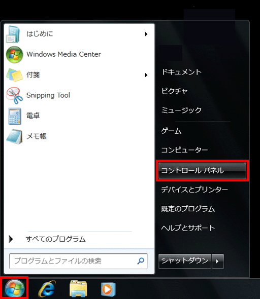 1. スタートメニューから【コントロールパネル】をクリックしてください。