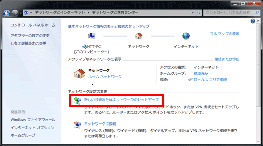 3. 【新しい接続またはネットワークのセットアップ】をクリックしてください。