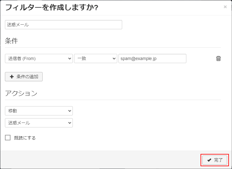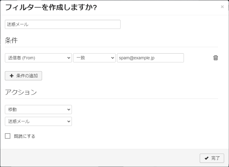 下記手順で一般的な「振り分け」設定が可能です。