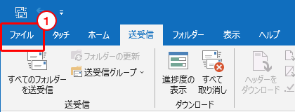 1.「Outlook」を起動し、「ファイル」をクリックします。