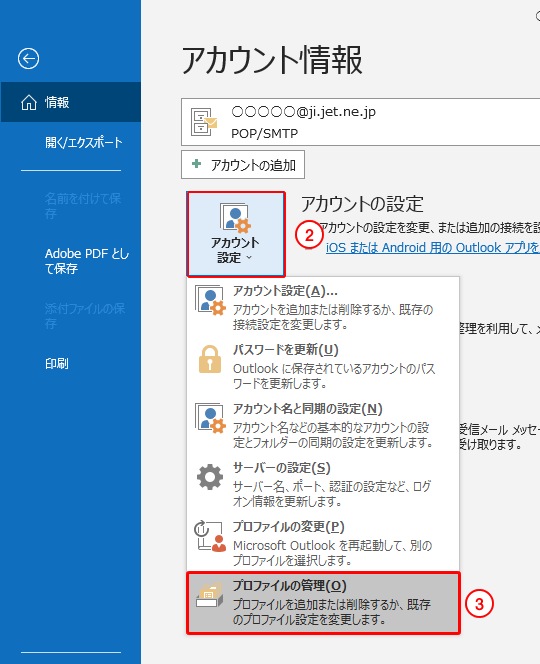 3.「プロファイルの管理」をクリックします。