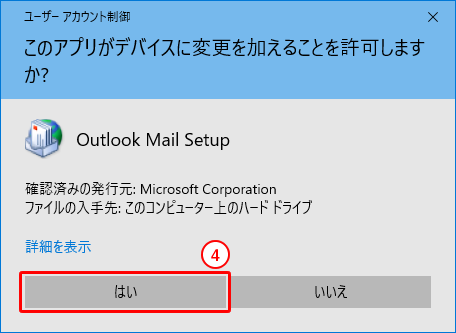 4.「このアプリがデバイスに変更を加えることを許可しますか?」という画面が表示された場合、「はい」をクリックします。