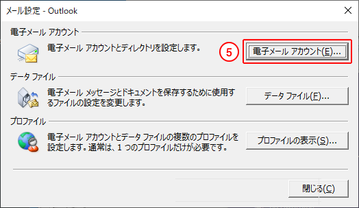 (手順5や手順6の「アカウント設定」画面は「閉じる」で閉じてください。)