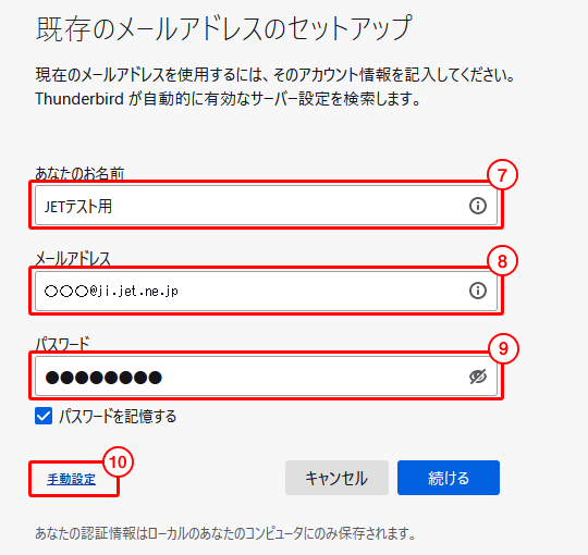 9. 会員証に記載されている「POP/SMTPパスワード」を入力します。