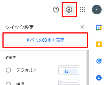 2.設定ボタンをクリックし、「→すべての設定を表示」をクリックします。