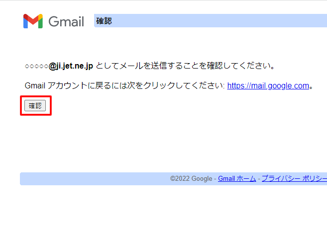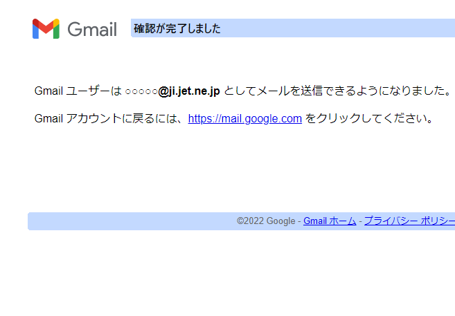 12.「確認が完了しました」と表示されたら、SMTP設定は完了です。画面を閉じるかURLをクリックしてGmailに戻ります。
