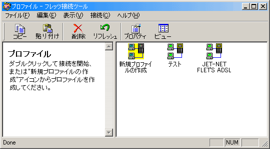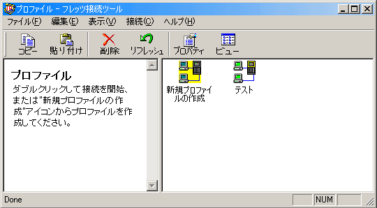 新規に接続設定を作成するので、[新規プロファイルの作成]のアイコンをダブルクリックします。