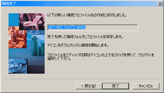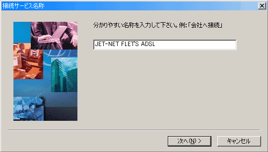 分かりやすい名称を入力してください。ここでは[JET-NET FLET'S ADSL]と入力しました。