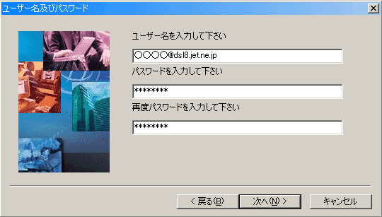→ADSL1.5Mの方…[接続アカウント]@dsl.jet.ne.jp