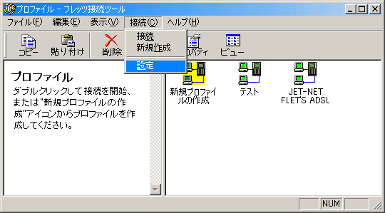 ※先ほど作成した[JET-NET FLET'S ADSL]のアイコンが表示されています。