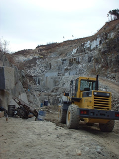 丸森町史から みかげ石の岩盤状の丁場から切り出し。昭和45年から本格的な採石が始まりました。普通の白みかげ石と比較して硬度が高く、石目が緻密で青みがかっていることから、高級墓石用材として人気があり、日本全国に出荷されています。